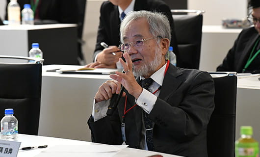 発表に先立ち、文部科学省産業連携地域支援課長、斉藤卓也氏の開会のことばで幕を開けました。続いて、審査員を務める大隅良典氏、南谷真鈴氏、向井千秋氏による講演が行われました。ノーベル賞受賞につながった基礎科学研究、チャレンジ精神で叶えた探検家グランドスラムの達成、宇宙開発の技術による人類への貢献と、それぞれにめざましい功績を挙げた方々の経験・体験に裏打ちされた重みのある言葉に、コンテスト参加者を含めた聴衆の皆さんは熱心に聴き入っていました。
